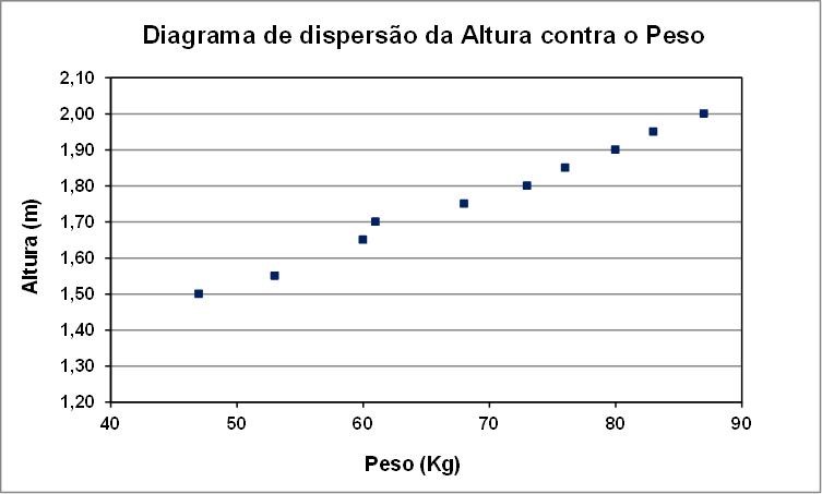O diagrama da figura 6 ilustra um exemplo da relação entre a altura e o peso de um grupo de pessoas do sexo masculino.